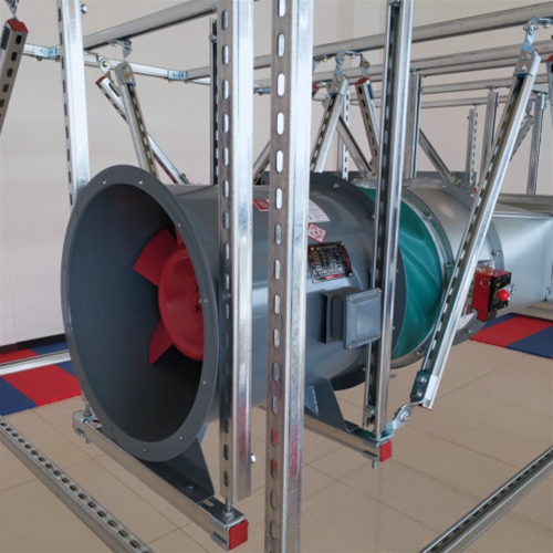 暖通局部:(1)管道不應(yīng)穿過(guò)抗震縫,當(dāng)必須穿梭時(shí),須在抗震縫兩邊各裝一個(gè)柔性管接頭或在通過(guò)抗震縫處裝置“門(mén)”形彎頭或設(shè)伸縮節(jié);(2)鍋爐房、制冷機(jī)房、熱交換站內(nèi)的管道應(yīng)有堅(jiān)固的側(cè)向跟縱向抗震支撐,多根管道共用管廊支架或管徑≥300mm 的單根管道支吊架宜采取門(mén)型管廊支架;(3)矩形截面面積大于即是0.38m2 跟圓形直徑大于即是0.70m 的風(fēng)道可采取管廊支架,管廊支架的設(shè)置跟設(shè)計(jì)應(yīng)合乎本標(biāo)準(zhǔn)第8章的請(qǐng)求。(4)防排煙風(fēng)道、事變通風(fēng)風(fēng)道及其設(shè)備應(yīng)采取管廊支架。